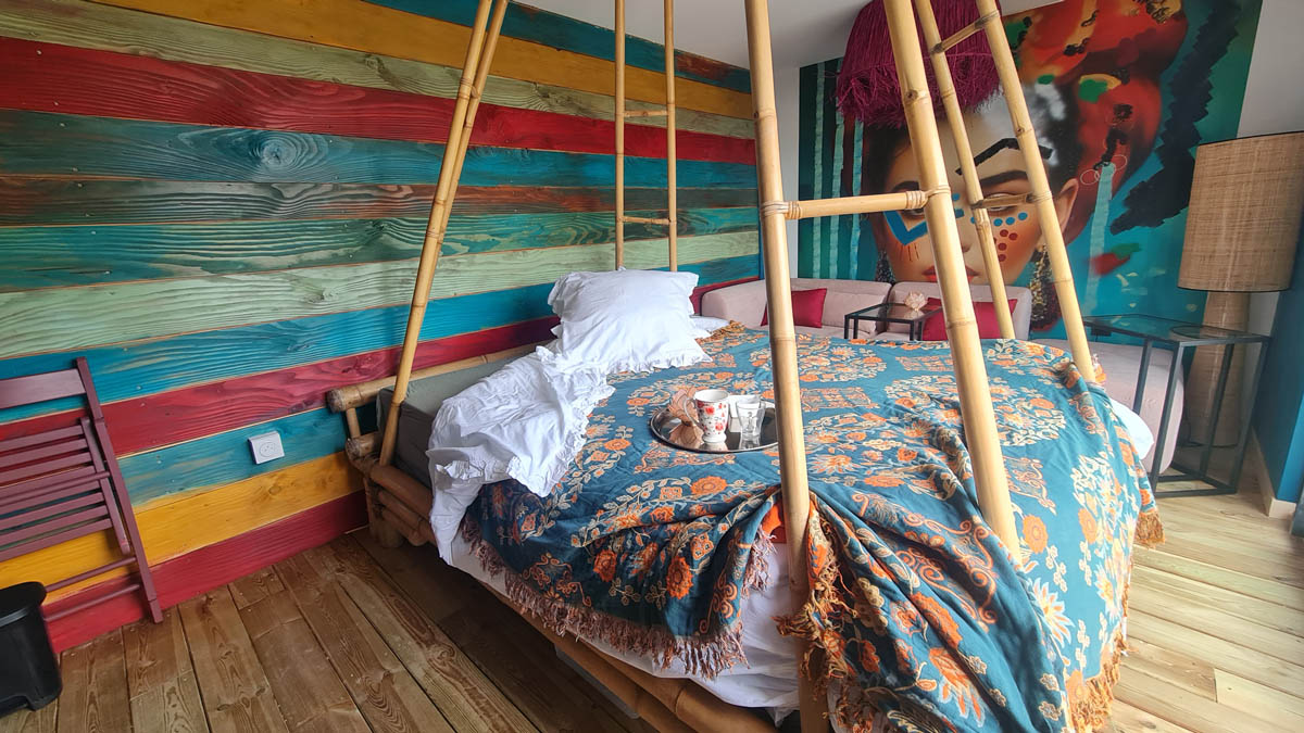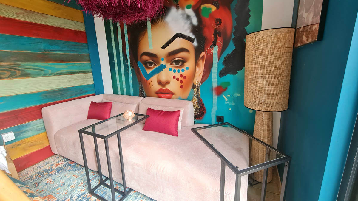 La décoration intérieure, résolument colorée et joyeuse, vous plonge dans une ambiance chaleureuse et décalée.