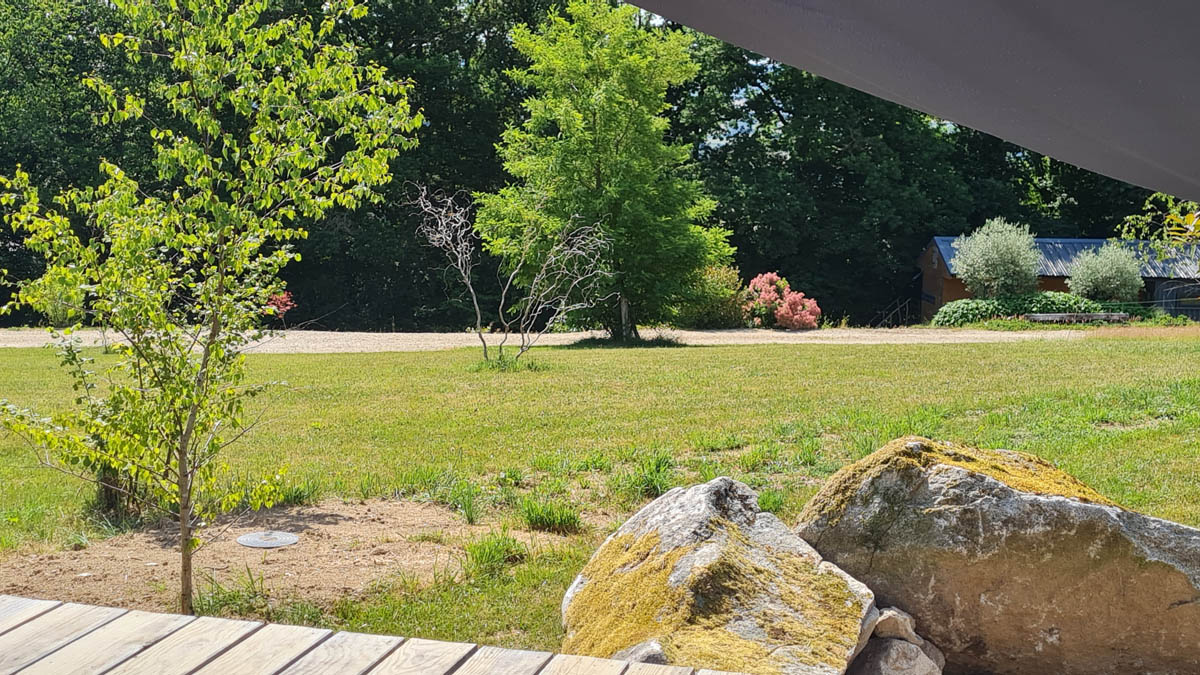 Côté extérieur, une belle terrasse en bois vous accueille pour vos repas en plein air, dans un cadre verdoyant et apaisant.